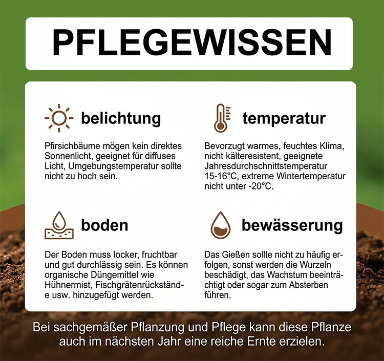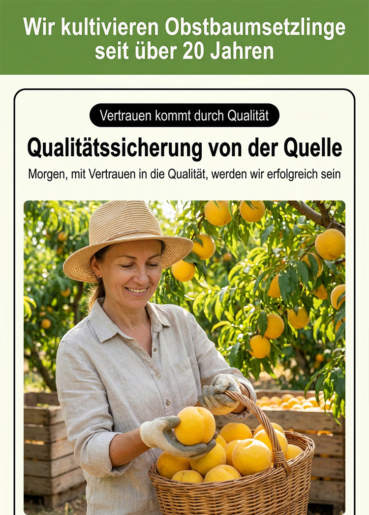 🔬 Ein bahnbrechender Erfolg der europäischen Agrarwissenschaft: in nur 90 Tagen (10-12 Wochen) vom Setzling bis zur ersten Ernte! 📈 99,5% Anwuchsrate: Extrem robust gegen Frost bis -20°C sowie große Hitze, mit integriertem natürlichem Schädelschutz. 🍑 Keine Erfahrung nötig: Selbstbestäubend und pflegeleicht – die perfekte Wahl für den Balkon, Pflanzkübel oder den Garten.